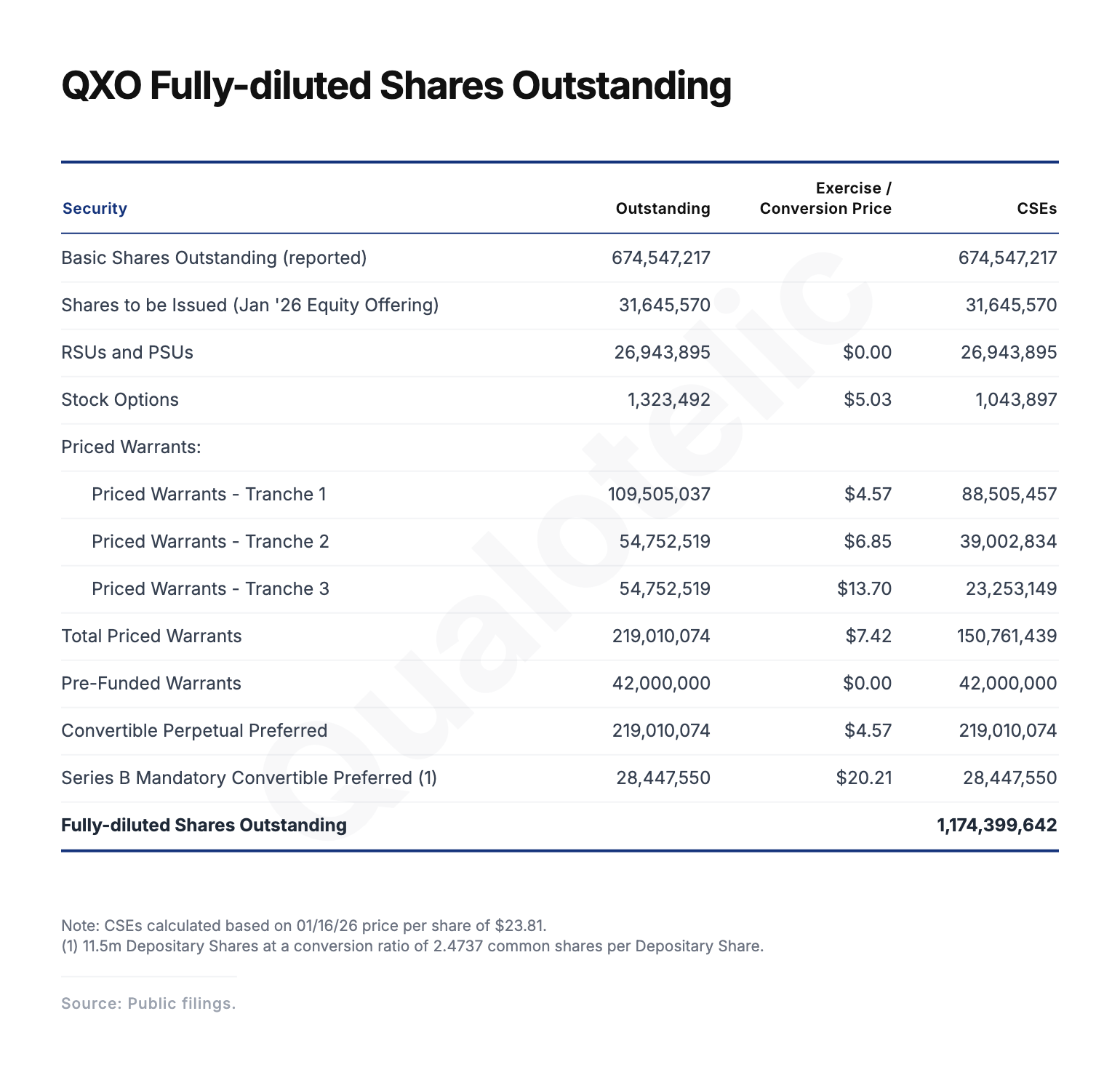Putting this all together, here is the calculation of QXO’s current fully-diluted share count:
